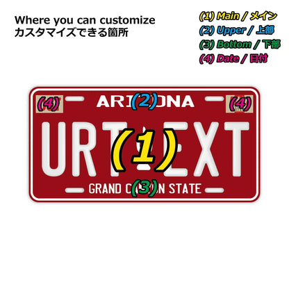 Nameplate [Large, for US cars] Arizona 80s/Original American embossed license plate, stylish nameplate sign
