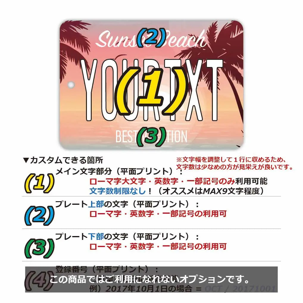 These plates are American size, so they cannot be installed on Japanese cars. Even if they can be installed, their use on public roads is prohibited by the Road Traffic Act. For example, it is okay to install them for dress-up purposes, such as at a car show, but it is a violation to drive on public roads with these plates installed.