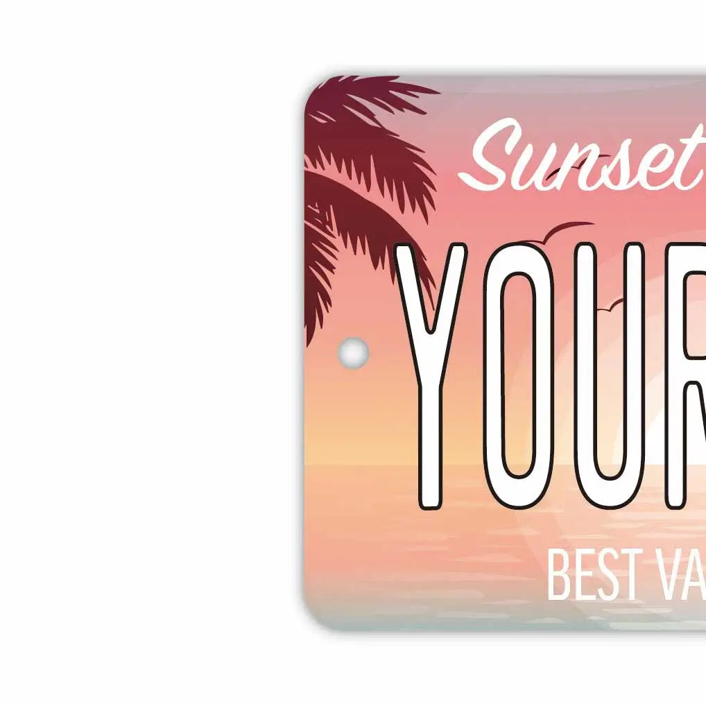 [Mirror Tag] Palm Tree / Ocean Sunset / Original American License Plate Type Air Freshener