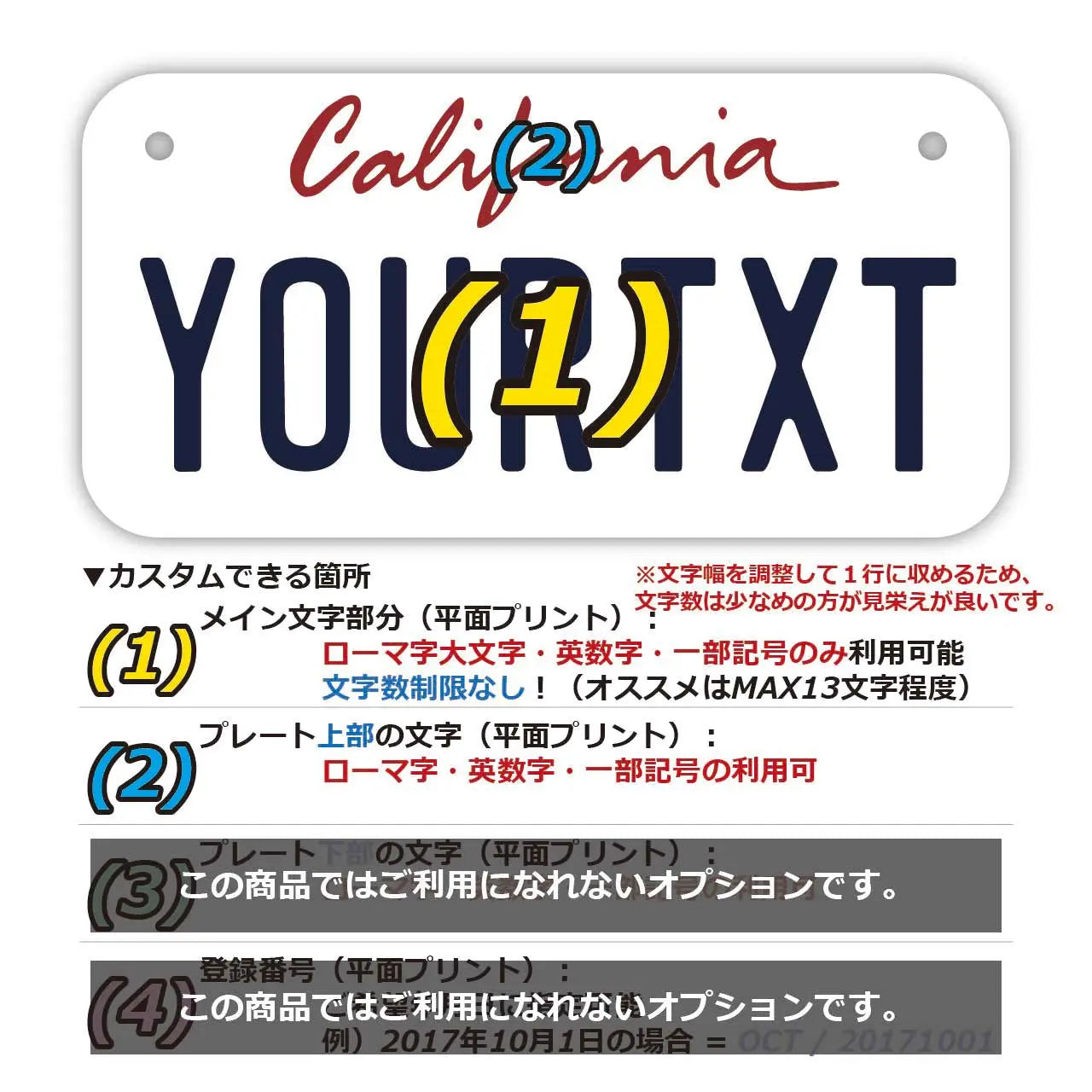 These plates are American size, so they cannot be installed on Japanese cars. Even if they can be installed, their use on public roads is prohibited by the Road Traffic Act. For example, it is okay to install them for dress-up purposes, such as at a car show, but it is a violation to drive on public roads with these plates installed.