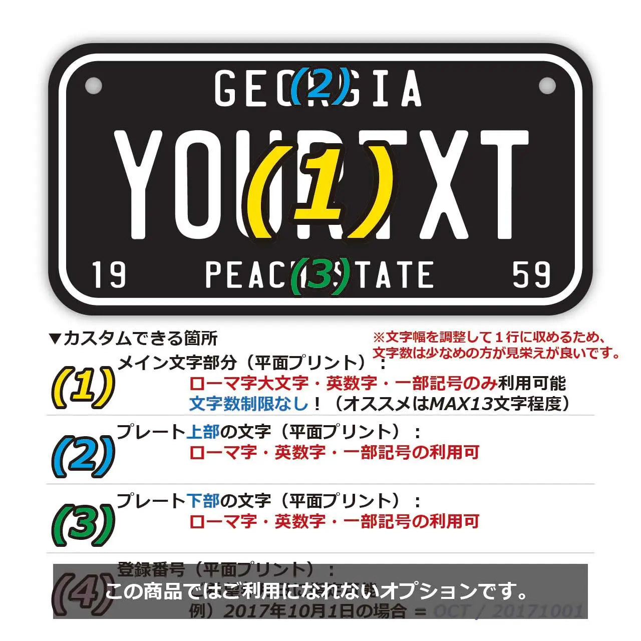 We can produce your original American license plate with the text you want, one of a kind in the world! Printed in Japan using American materials. Each plate is handmade. Tough enough for outdoor use! Holes for hanging on the wall are also included.