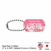 A one-of-a-kind dog tag that can be produced with any text you want! Printed in Japan using American materials. Each one is handmade. Made of aluminum that won't rust even if it gets wet. You can also choose a ball chain or silencer (rubber edge) made in the USA!