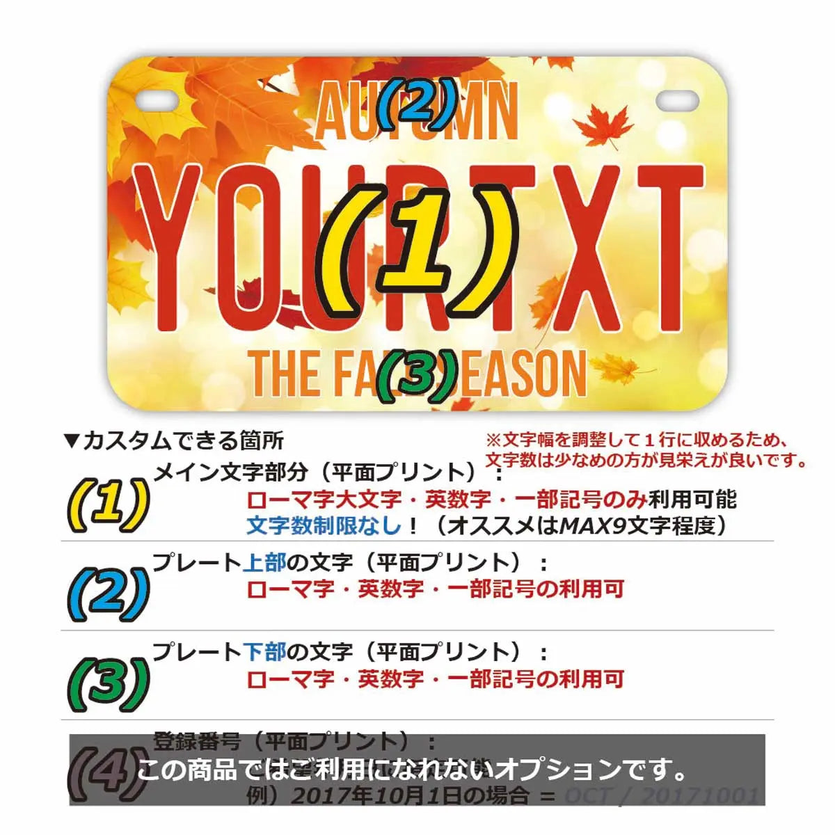 as mentioned above, [Character part] can be customized is! Elements (1) to (4) can be specified respectively. It may not be possible to customize depending on the design So, for details, see each product 2nd product image It is published in Explanatory image Please check more.