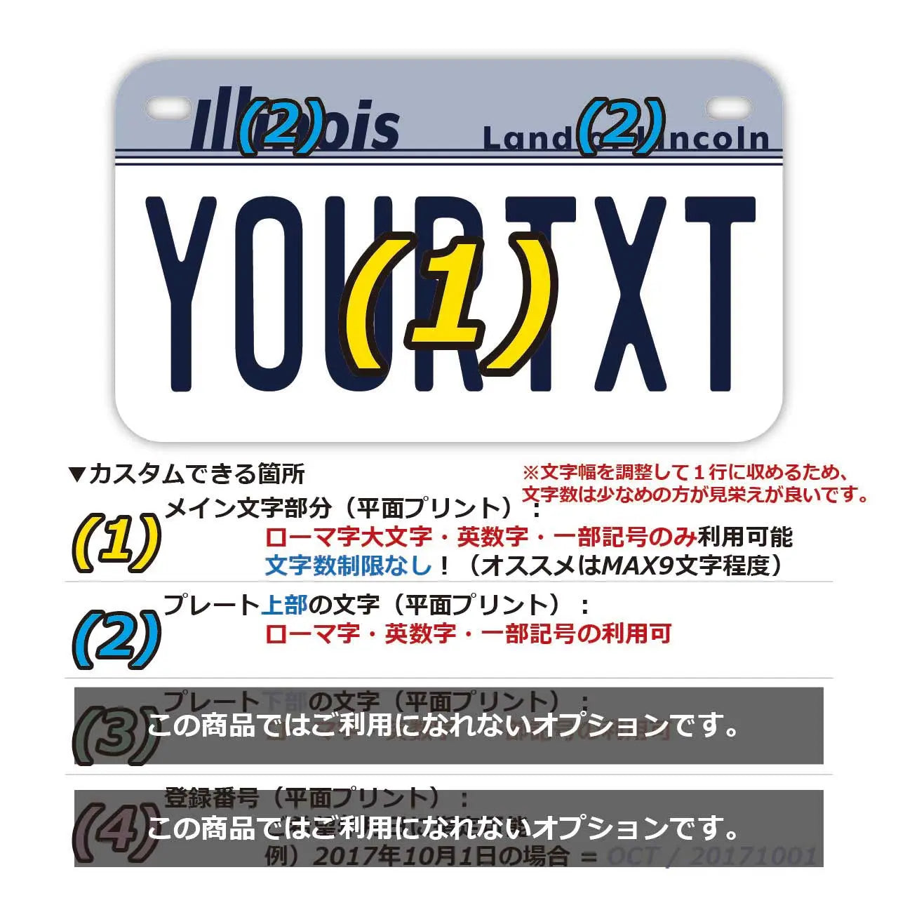 We can produce your original American license plate with the text you want, one of a kind in the world! Printed in Japan using American materials. Each plate is handmade. Tough enough for outdoor use! Holes for hanging on the wall are also included.