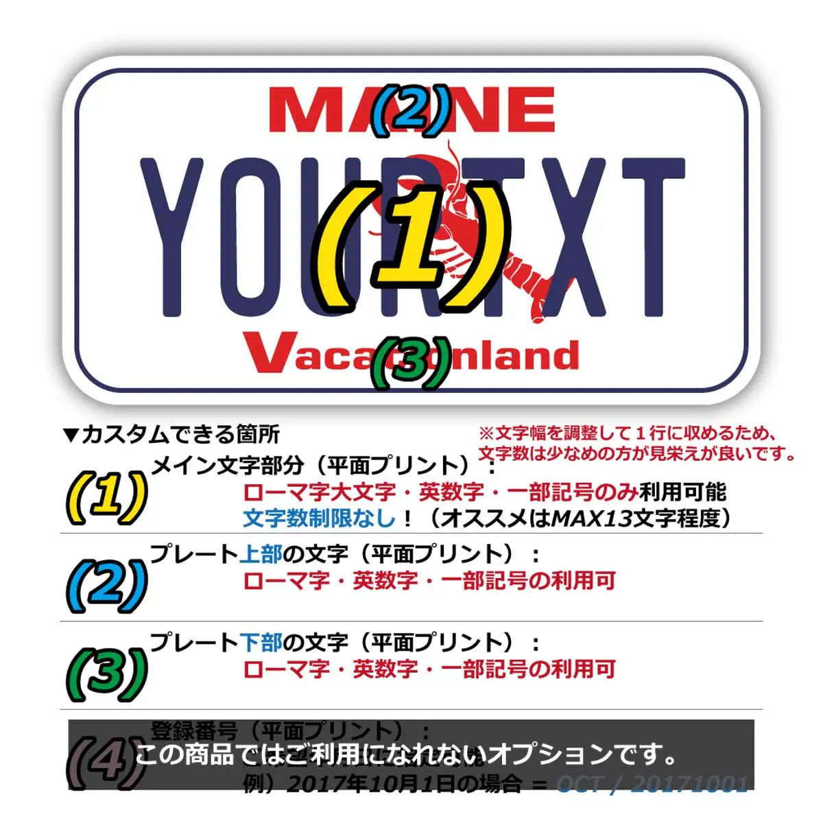 In your desired text1 pieceOriginal American license plate stickers that can be produced from scratch! Printed in Japan with strong adhesive. PVC coated for a glossy finish that is water and weather resistant. Not only can it be used outdoors, but it's also tough enough to stick on your car!