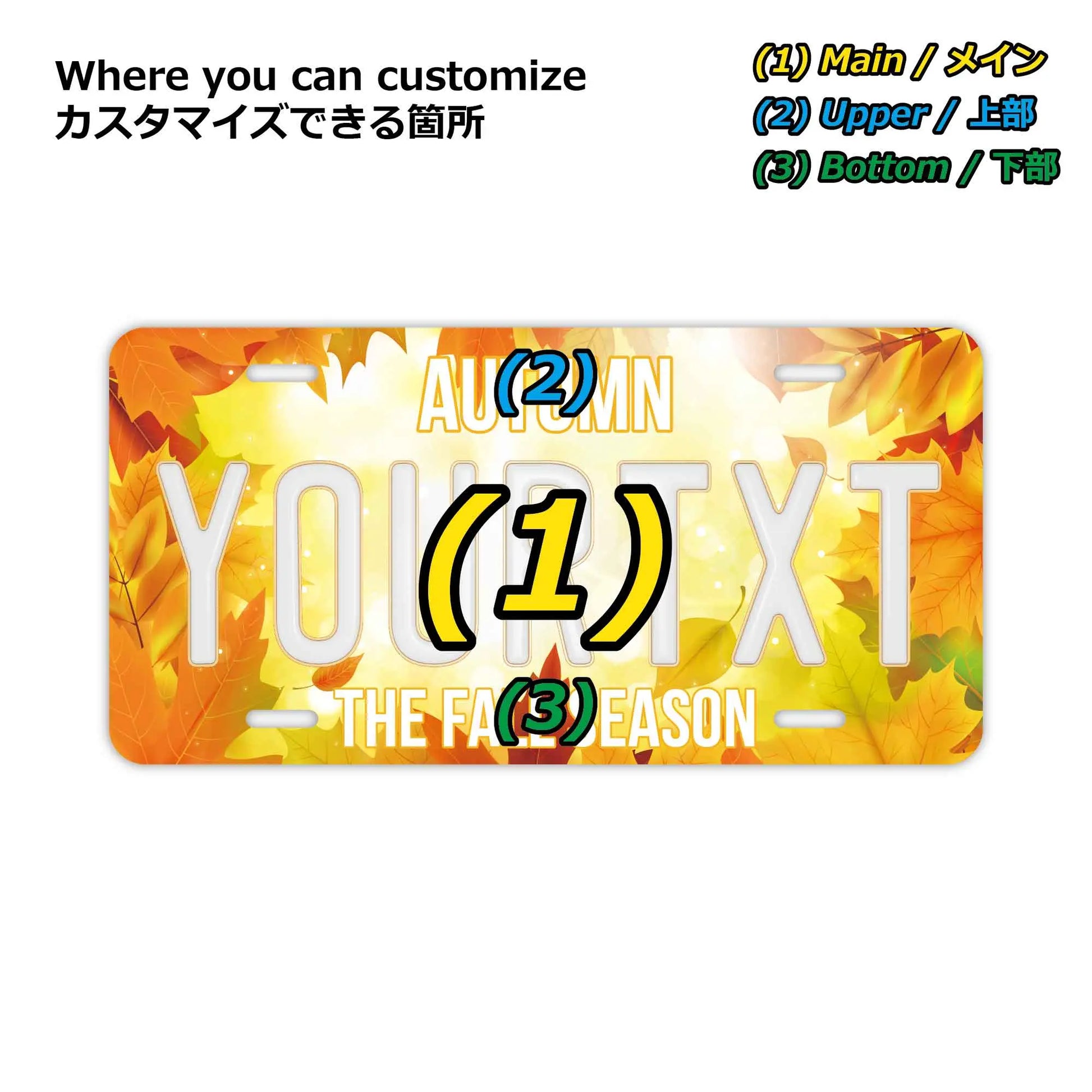 カスタムライセンスプレート型看板 【大・US車用】紅葉・イエロー/オリジナルアメリカエンボスナンバープレート おしゃれ表札看板