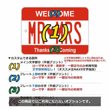 (1)メイン文字にご利用できるフォントは、アメリカナンバープレートに利用されているものと類似のフォントを使っています。