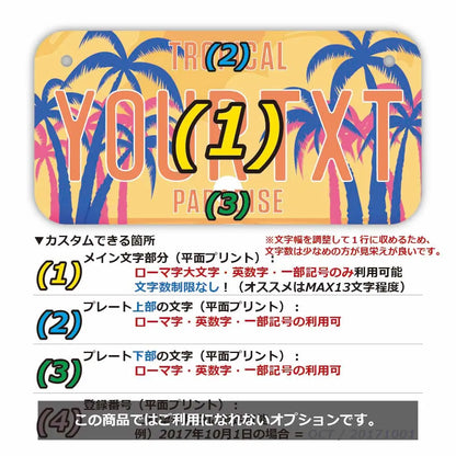 カスタムライセンスプレート 【小・自転車用】ヤシの木・サンセットパラダイス/オリジナルアメリカナンバープレート
