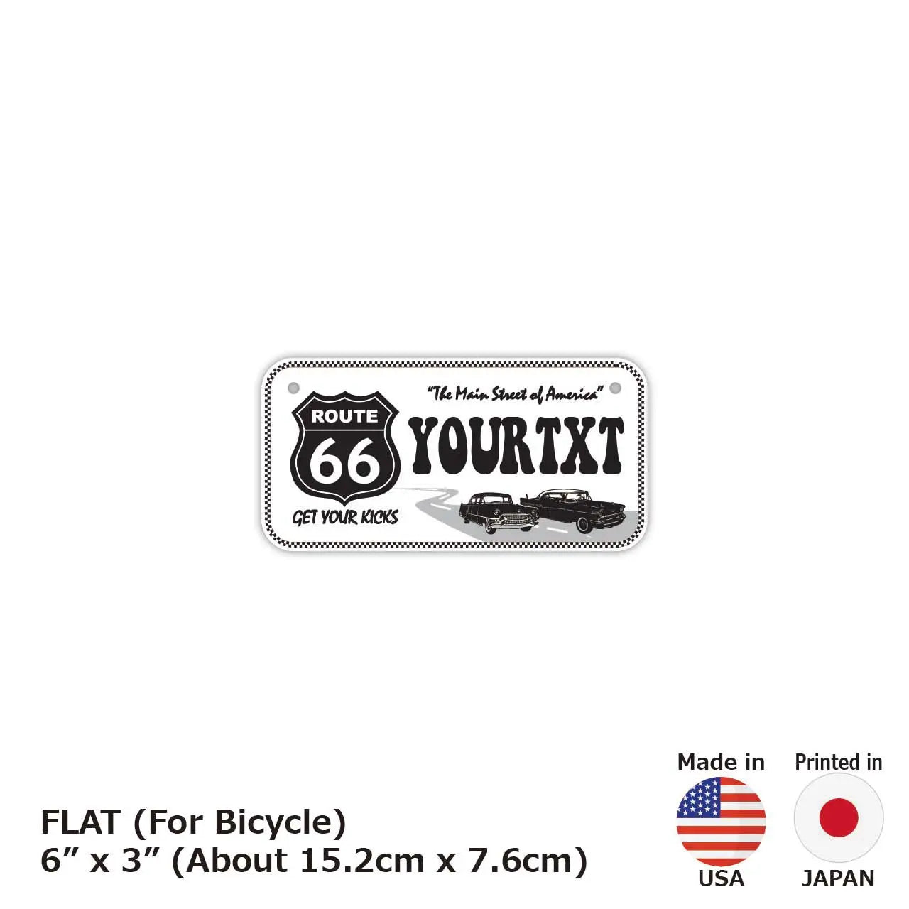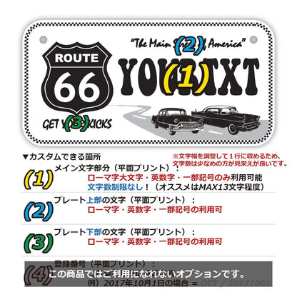 カスタムライセンスプレート 【小・自転車用】ルート66ホワイト/オリジナルアメリカナンバープレート