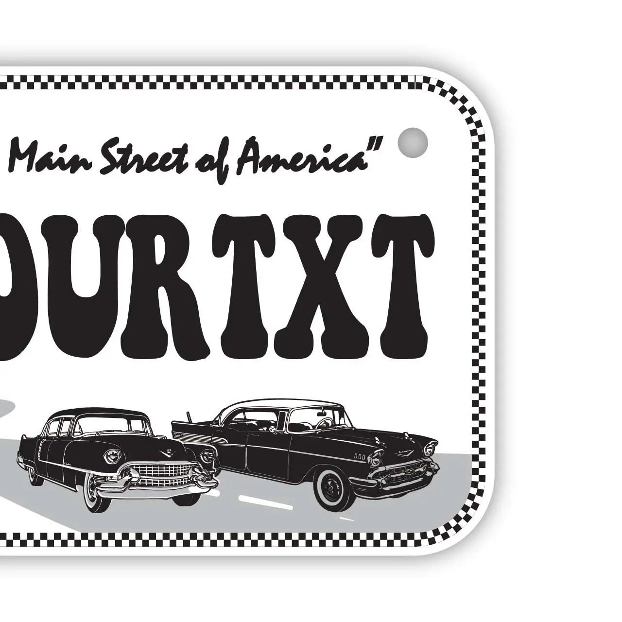 ご希望文字で1枚から生産できる、世界に1枚のオリジナル・アメリカライセンスプレート!アメリカ製素材を使い日本国内でプリント。1枚1枚を手作りしています。屋外使用もOKなタフさ!壁掛け用の穴もあります。