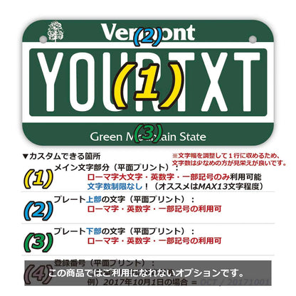 カスタムライセンスプレート 【小・自転車用】バーモント/オリジナルアメリカナンバープレート