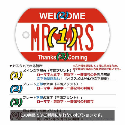 【犬用迷子札・ドッグタグ】カラー・レッド/オリジナルアメリカナンバープレート型 名入れキーホルダー