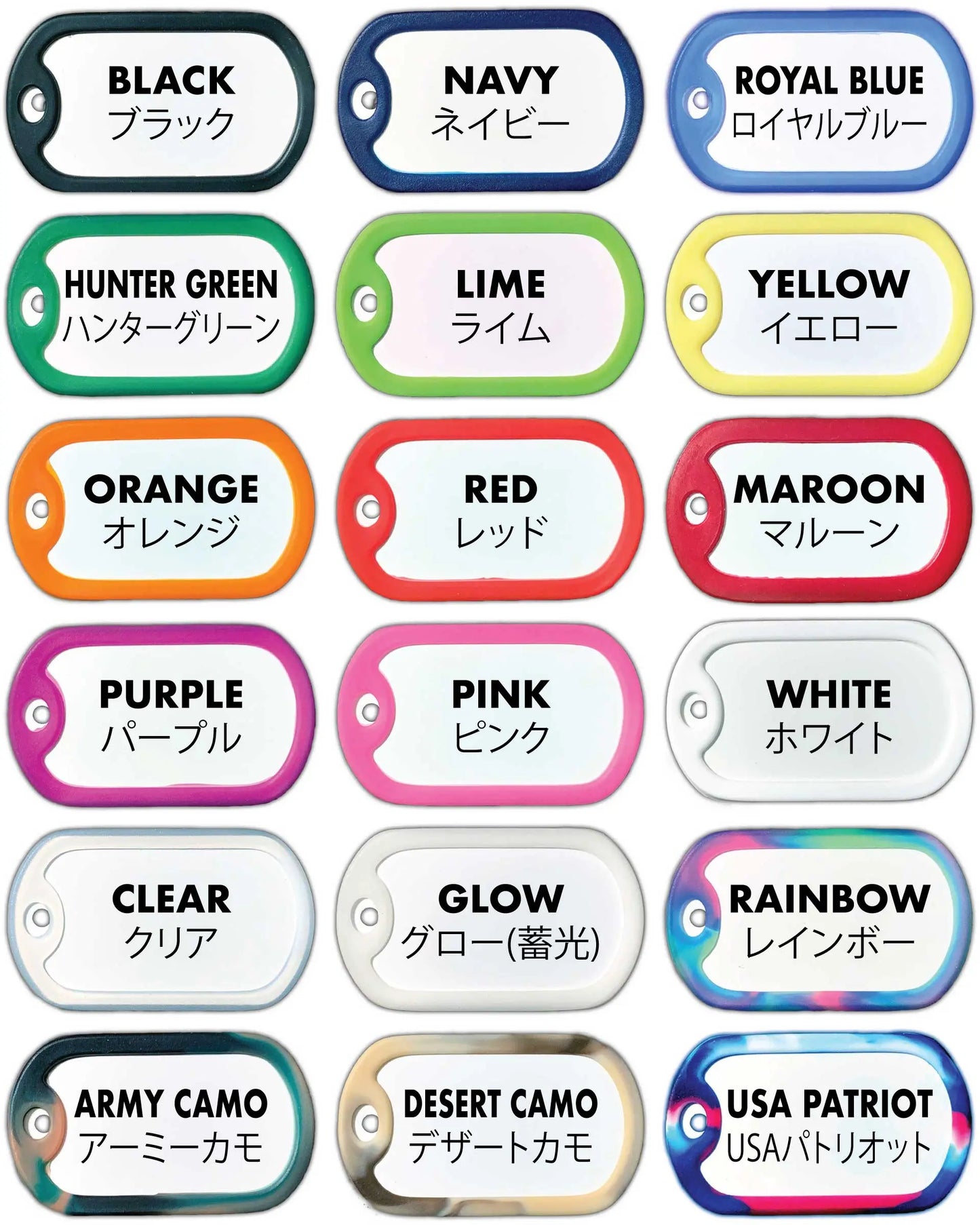ご希望文字で1枚から生産できる、世界に1枚のドッグタグ!アメリカ製素材を使い日本国内でプリント。1枚1枚を手作りしています。水に濡れても錆びないアルミニウム素材。同じくアメリカ製のボールチェーンや、サイレンサー(フチのゴム)も選べます!