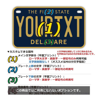 カスタムライセンスプレート型看板 【中・USバイク用】デラウェア/オリジナルアメリカナンバープレート
