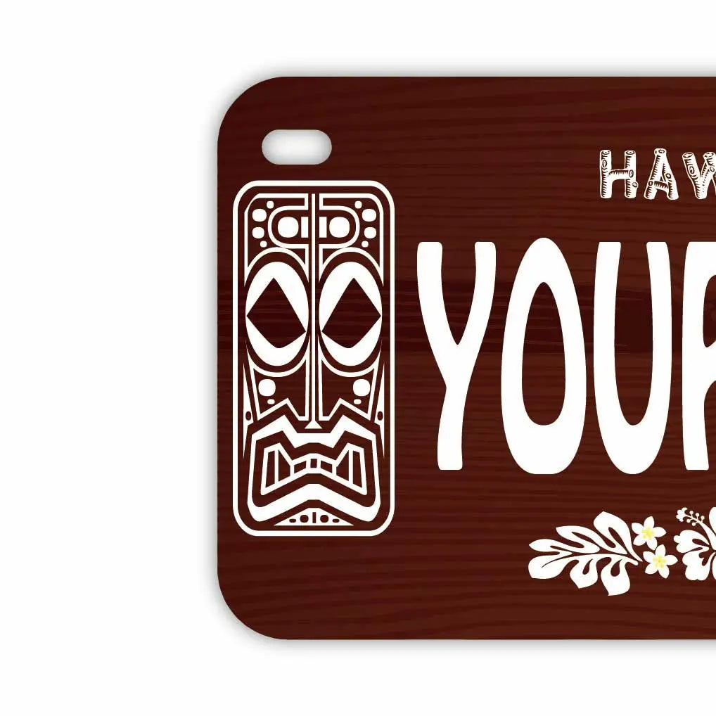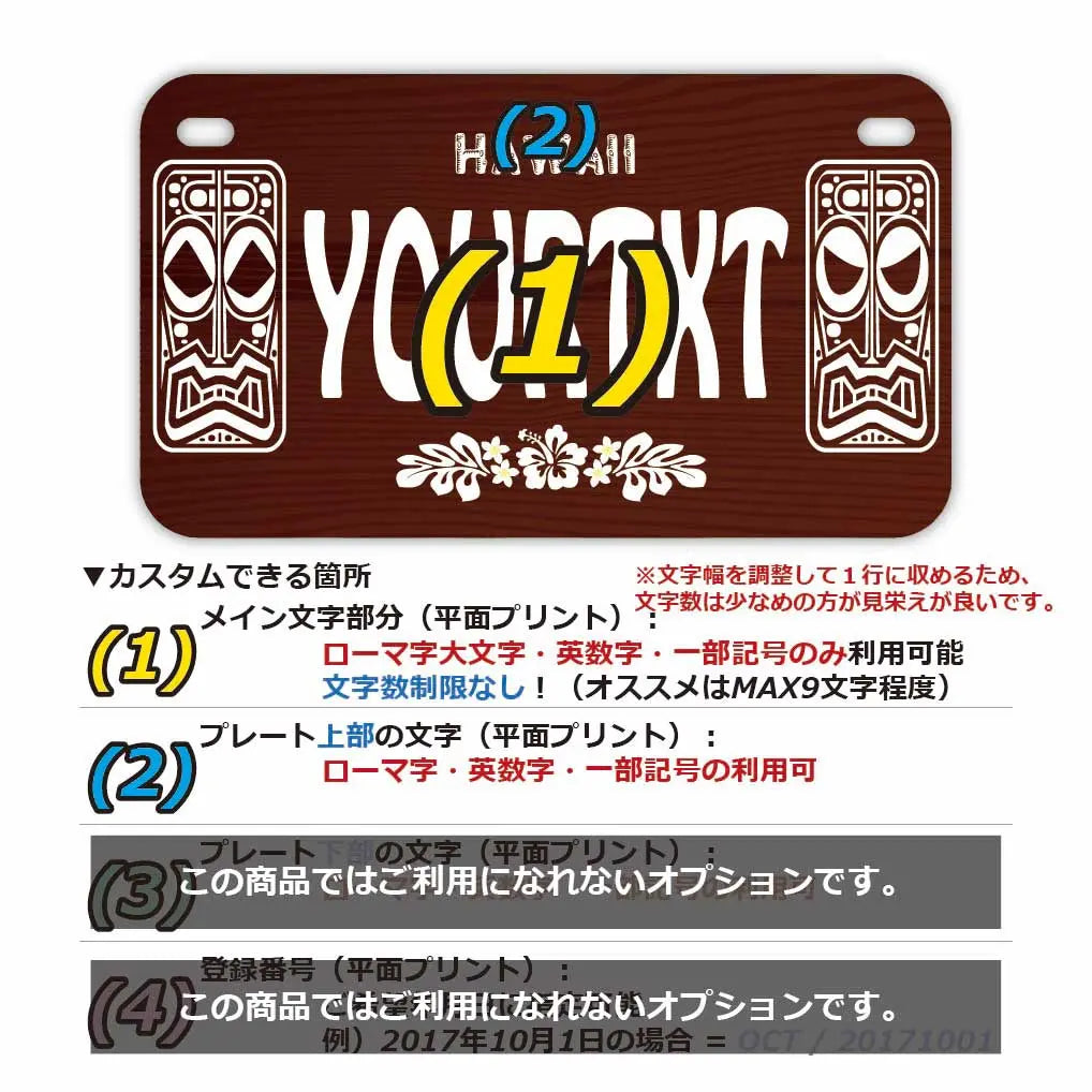 カスタムライセンスプレート型看板 【中・USバイク用】ハワイ・ティキ木目/オリジナルアメリカナンバープレート