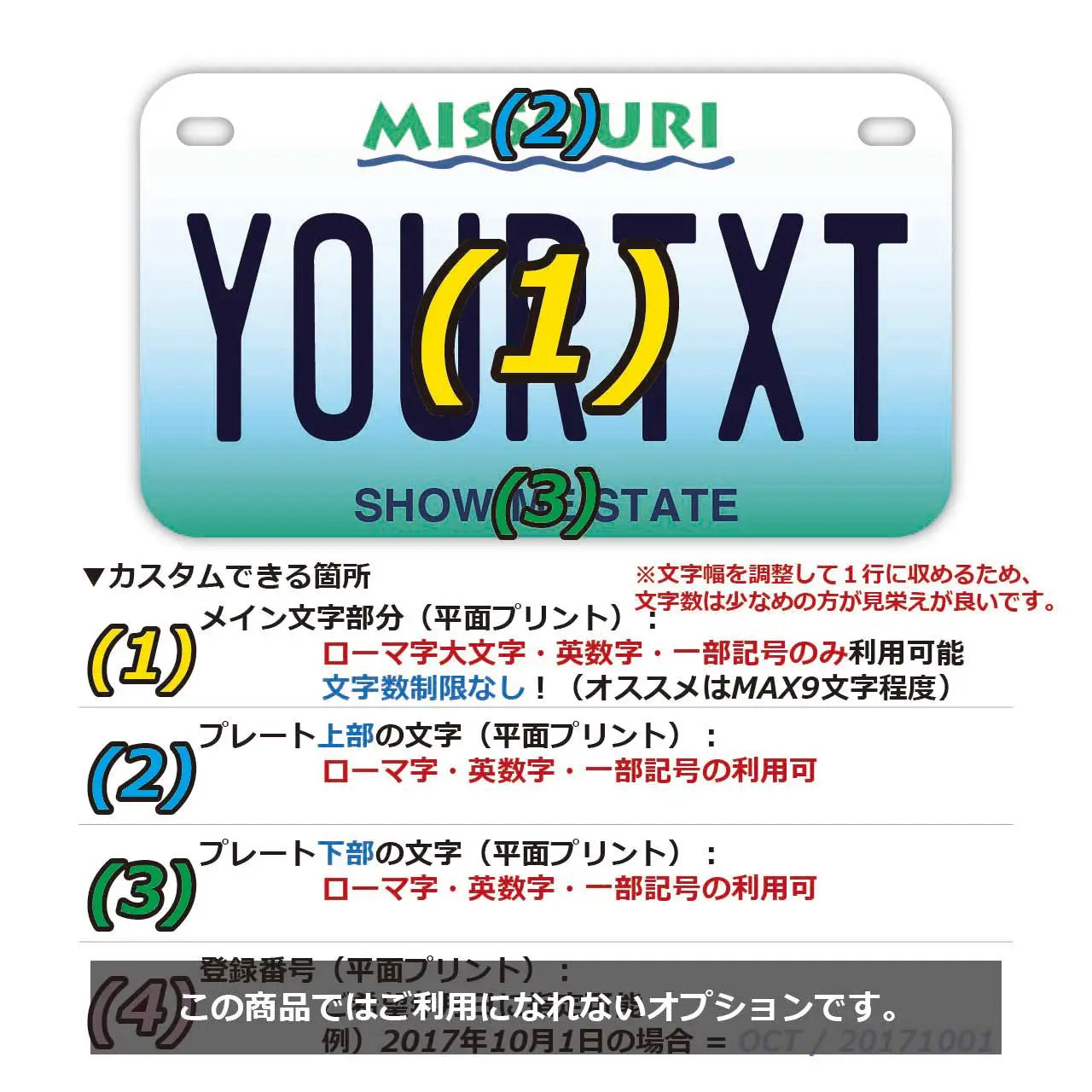 カスタムライセンスプレート型看板 【中・USバイク用】ミズーリ/オリジナルアメリカナンバープレート