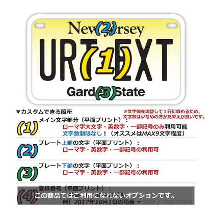 カスタムライセンスプレート型看板 【中・USバイク用】ニュージャージー/オリジナルアメリカナンバープレート