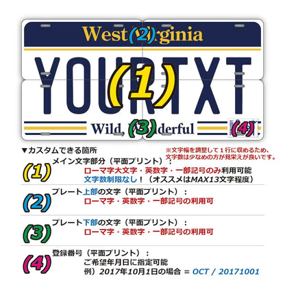 【マルチプレート】ウェストバージニア/オリジナルアメリカカスタムライセンスプレート型看板