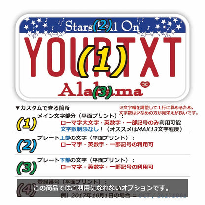 【ステッカー】アラバマ/オリジナルアメリカライセンスプレート型・耐水・耐候・屋外OK