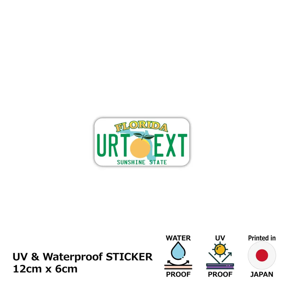 ご希望文字で1枚から生産できる、オリジナル・アメリカライセンスプレート型ステッカー!日本国内でプリントした強粘着タイプ。PVCコーティングを施し、耐水・耐候で光沢のある仕上がり。屋外使用はもちろん、お車の車体に貼り付けてもOKなタフさ!