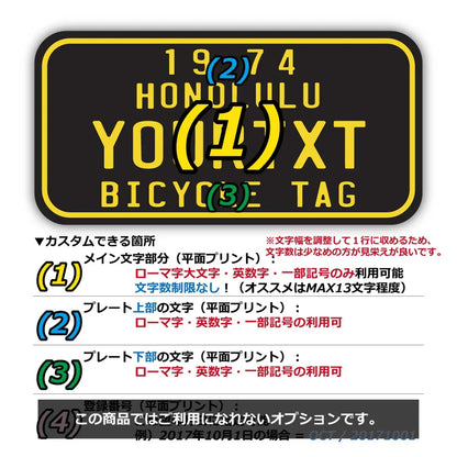【ステッカー】ハワイ自転車タグ・ブラック/オリジナルアメリカライセンスプレート型・耐水・耐候・屋外OK