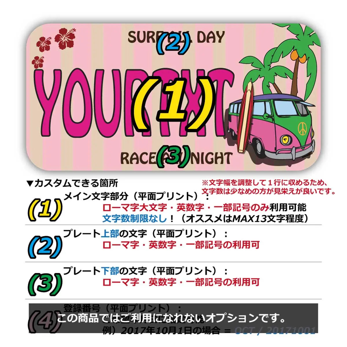 (1)メイン文字にご利用できるフォントは、アメリカナンバープレートに利用されているものと類似のフォントを使っています。
