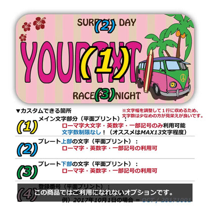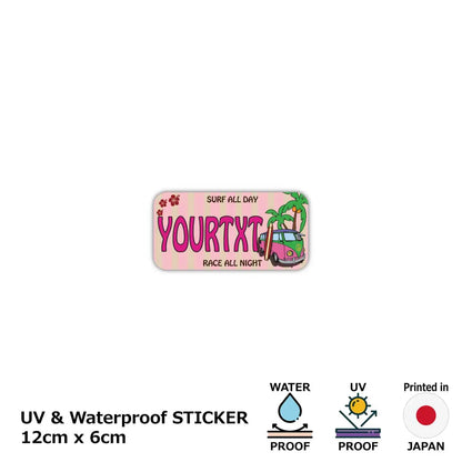 【ステッカー】ワーゲンバス・ピンク/オリジナルアメリカライセンスプレート型・耐水・耐候・屋外OK
